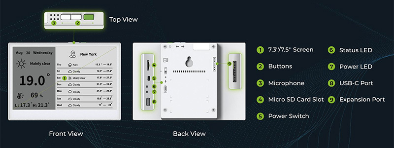reTerminal E1001 是一款完全組裝的 HMI(人機介面),採用時尚耐用的外殼,整合 7.5 吋 800×480 單色電子紙顯示器。它搭載樂鑫 ESP32-S3 晶片,開箱即用,帶來驚豔的視覺效果,無需額外設定。