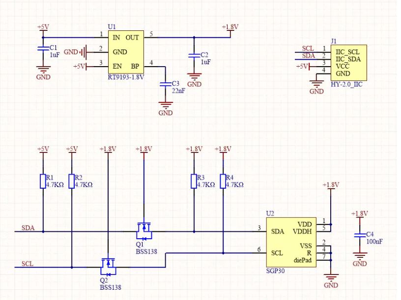 TVOC / eCO2 感測器整合了SGP30的數位多像素氣體感測器模組。 它主要測量空氣中的各種VOC(揮發性有機化合物)和H2氫氣。 可對其進行編程以檢測TVOC(總揮發性有機化合物)和eCO2(等效二氧化碳讀數)的濃度測量。 在測量範圍內,典型測量精度為15%,SGP30讀數在內部進行校準並輸出,可以保持長期穩定性。 SGP30使用I2C通訊協定具有濕度補償功能,可以通過外部濕度感測器運作。 如果需要獲得準確的結果,則需要根據已知的測量源進行校準。 SGP30具有內建的校準功能。 此外,eCO2是根據H2的濃度計算得出的,不能完全替代實驗室使用的 CO2感測器