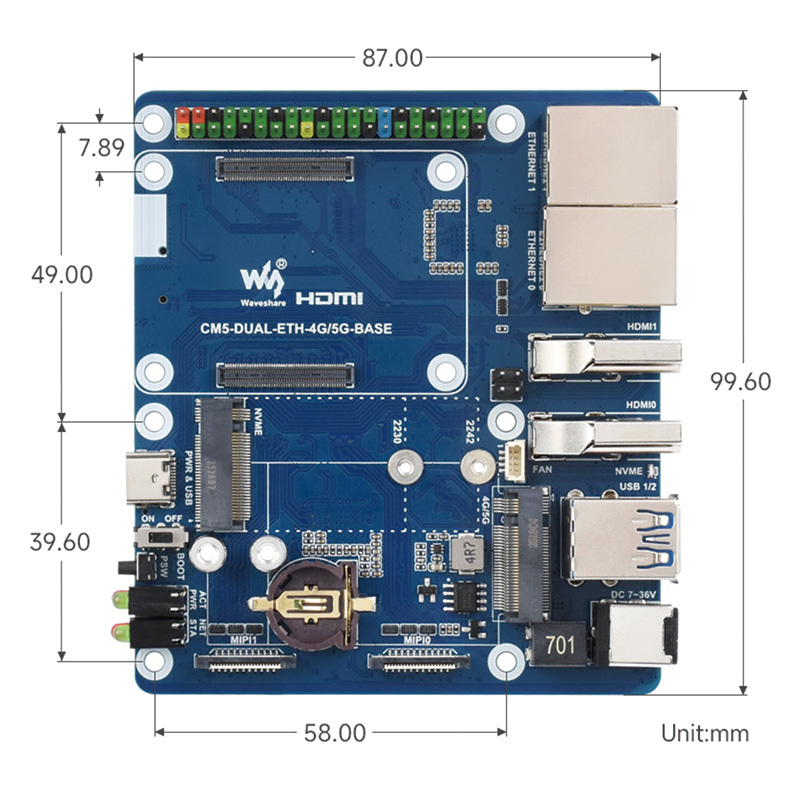 | M.2 (4G / 5G) | M.2 M KEY, supports connecting 4G / 5G communication module |