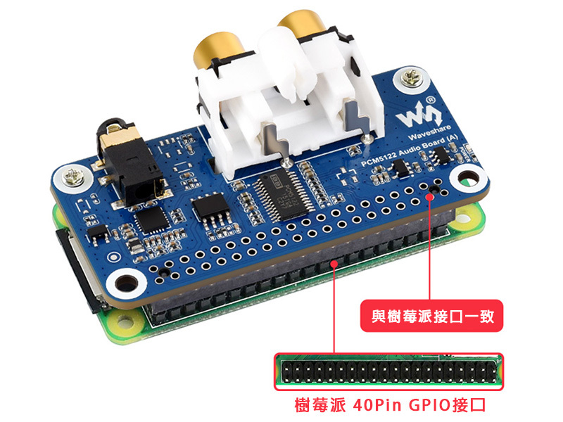 專為樹莓派設計的音訊音效卡擴充板,立體聲編解碼,支援高音質播放