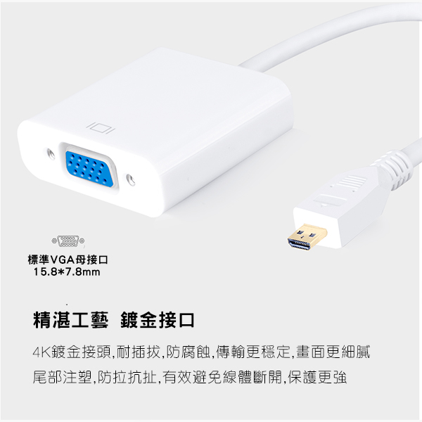 Micro HDMI轉VGA轉接線 (帶音頻)