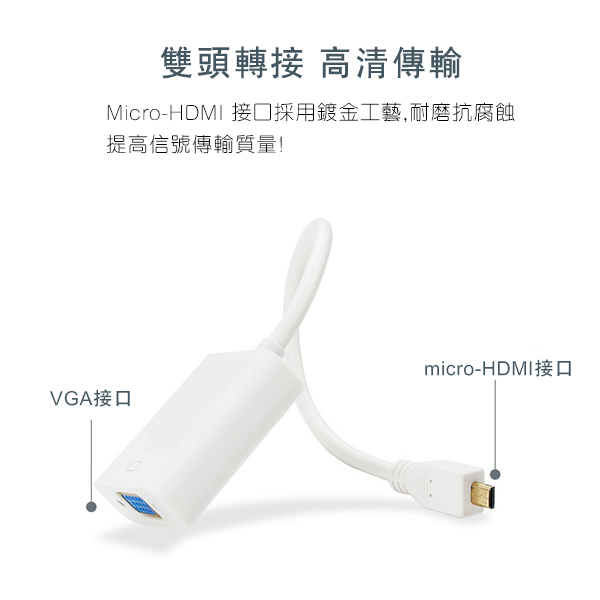 Micro-HDMI接口採用鍍金工藝,耐磨抗腐蝕,提高訊號傳輸質量