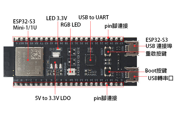 • ESP32-S3-DevKitM-1-N8開發板 x 1