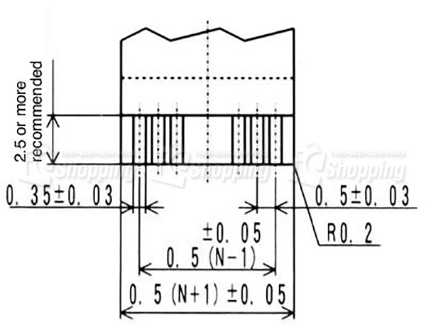 ●對前端部帶有保護層的軟性印刷電路板可標準指定進深加深0.5mm的擋塊。