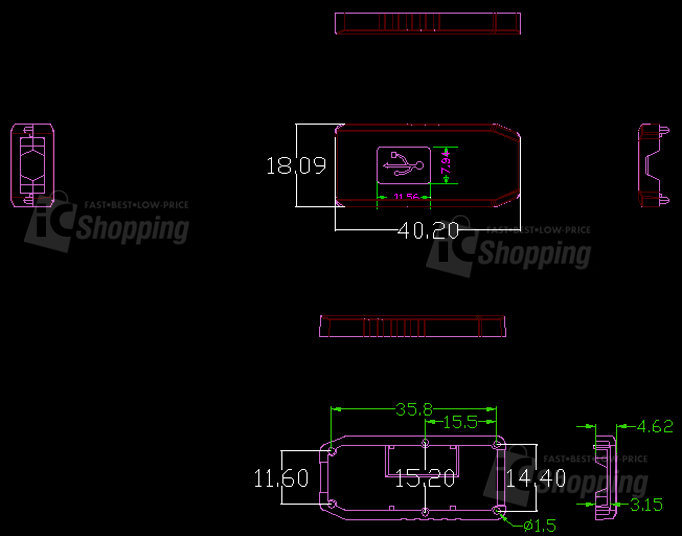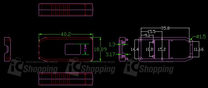 | 內部: | 內部空間是幾乎所有USB殼中最大的,可以容納下一定大小的電路板, 特別適合做串口轉換器,usbasp下載器等等。 內部設置了固定孔,方便小板固定 |