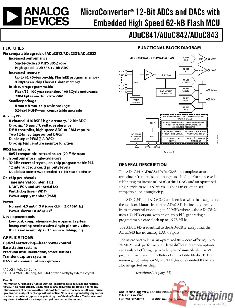 MicroConverter 12-Bit ADCs and DACs with. Embedded High Speed 62-kB Flash MCU.
