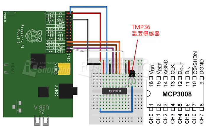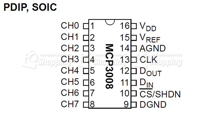 MCP3008可編程,以提供四個偽差分輸入對或八個單端輸入。