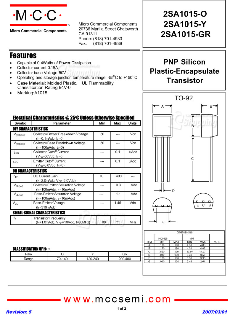 2SA1015-GR TO-92 (PNP) (10pcs)