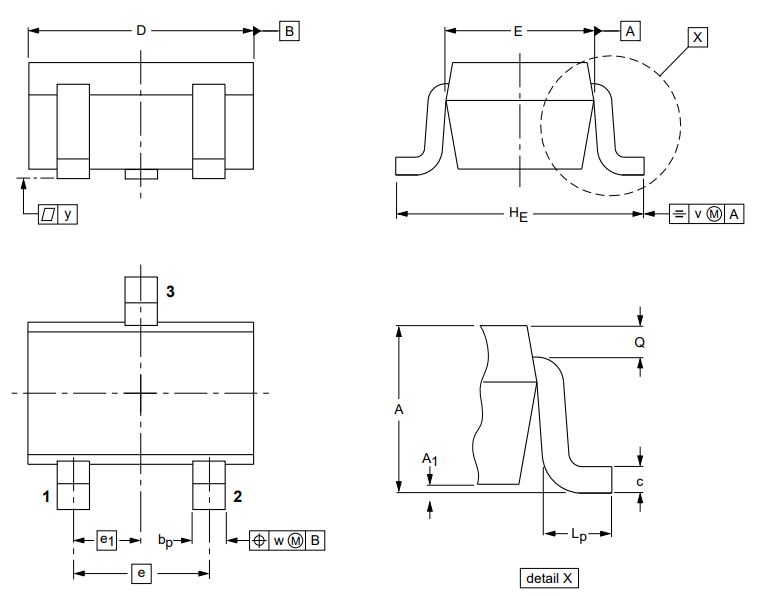 | Unit | A | A1 Max | bp | c | D | E | e | e1 | HE | Lp | Q | v | w |