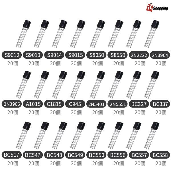 | 規格 | S9012 | S9013 | S9014 | S9015 | S8050 | S8550 | 2N2222 | 2N3904 |