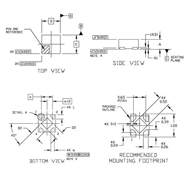 超小型封裝 XDFN4 0.65P,1 mm x 1 mm。