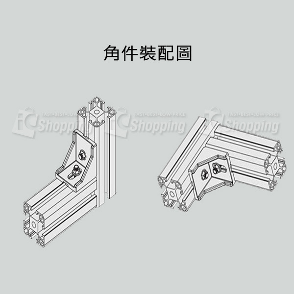 用於兩型材直角連接,可以用做需移動位置的型材連接,簡單方便,連接時用的螺栓和螺母需另配。型材通常用對應系列的T型螺母配內六角螺栓或T型螺栓配法蘭螺母使用,歐標型材也可用內六角螺栓配滑塊螺母、彈性螺母使用。國標型材還可用方型螺母與內六角螺栓配合使用。