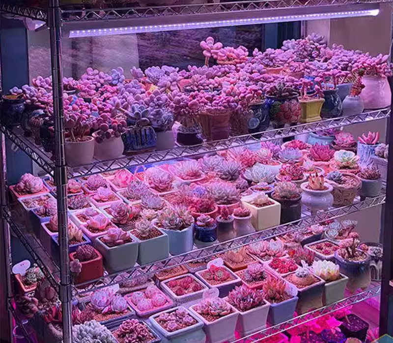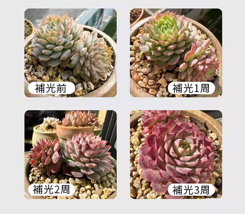 在全光譜燈光下,多肉植物可以獲得更多的光照,從而促進其生長和發育,提高色彩飽和和色彩深度,讓植物更美麗。