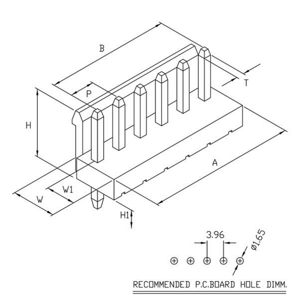 | P± 0.1 | W± 0.2 | W1± 0.2 | H± 0.3 | H1± 0.3 | T± 0.03 |