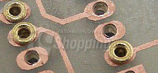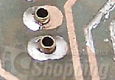 放好過孔後,一般的處理方式是用錘子敲,不過沒必要,只要在過孔鉚釘的兩邊都點一點錫就行了,因為過孔鉚釘是銅質的,很容易上錫,而且上錫也使連通率更加可靠。