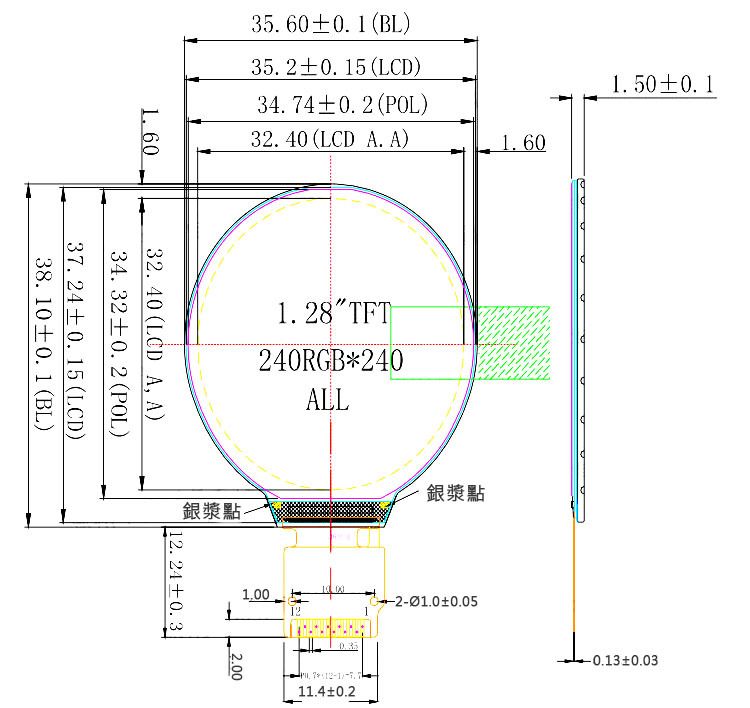 | 面板尺寸 | 35.6(H)x38.1(V)x1.5(D) mm | ||