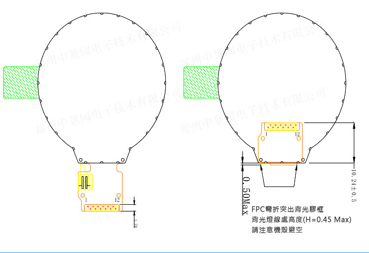 | Pin腳數量 | 12Pin(0.7mm 間距焊接式 FPC) | ||