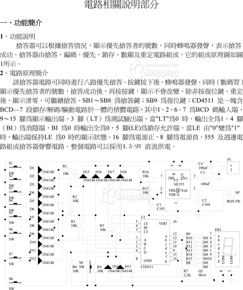 數碼管八路搶答器套件/八路數顯搶答器套件/電子實習套件/電子製作競賽套件/實驗套件/檢定套件