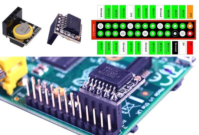 樹莓派:請將此DS3231 RTC模組直接插在樹莓派的1、3、5、7、9針腳即可