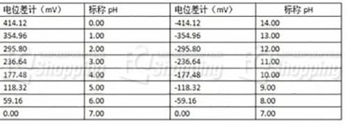 電極輸出為毫伏級,與pH值的關係如下(25℃):