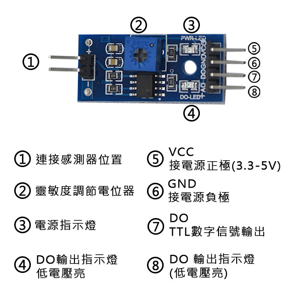 2. 產品可以寬範圍控制土壤的濕度,通過電位器調節控制相應閥值,濕度低於設定值時,DO輸出高電壓,高於設定值時,DO輸出低電壓;