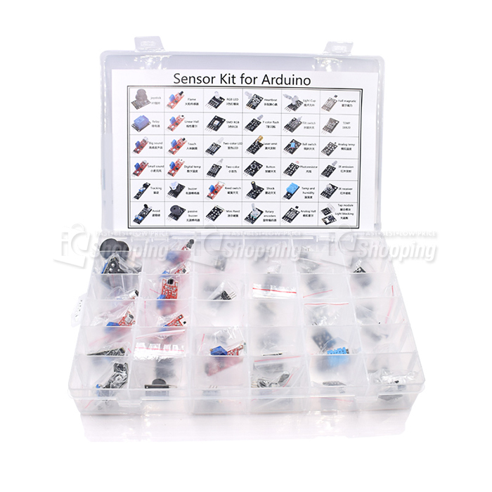 37款感測器套件是科易互動機器人推出的,感測器模組套裝。無論是學習Arduino還是其它控制器,感測器都是必須的,因為要有資料我們才能去控制,像光敏電阻、溫度感測器,紅外接收模組等都是經常使用的。