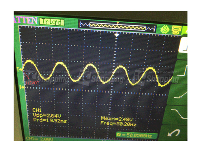 當L、N接AC220V,VCC、GND接DC5V,OUT、GND接示波器時可以 看到如下波形: