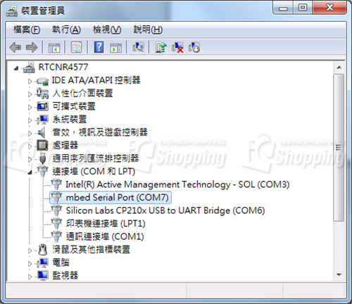 在 "Download latest driver" 下載 “mbedWinSerial_16466.exe” 並安裝之後,會在裝置管理員看到mbed serial port: