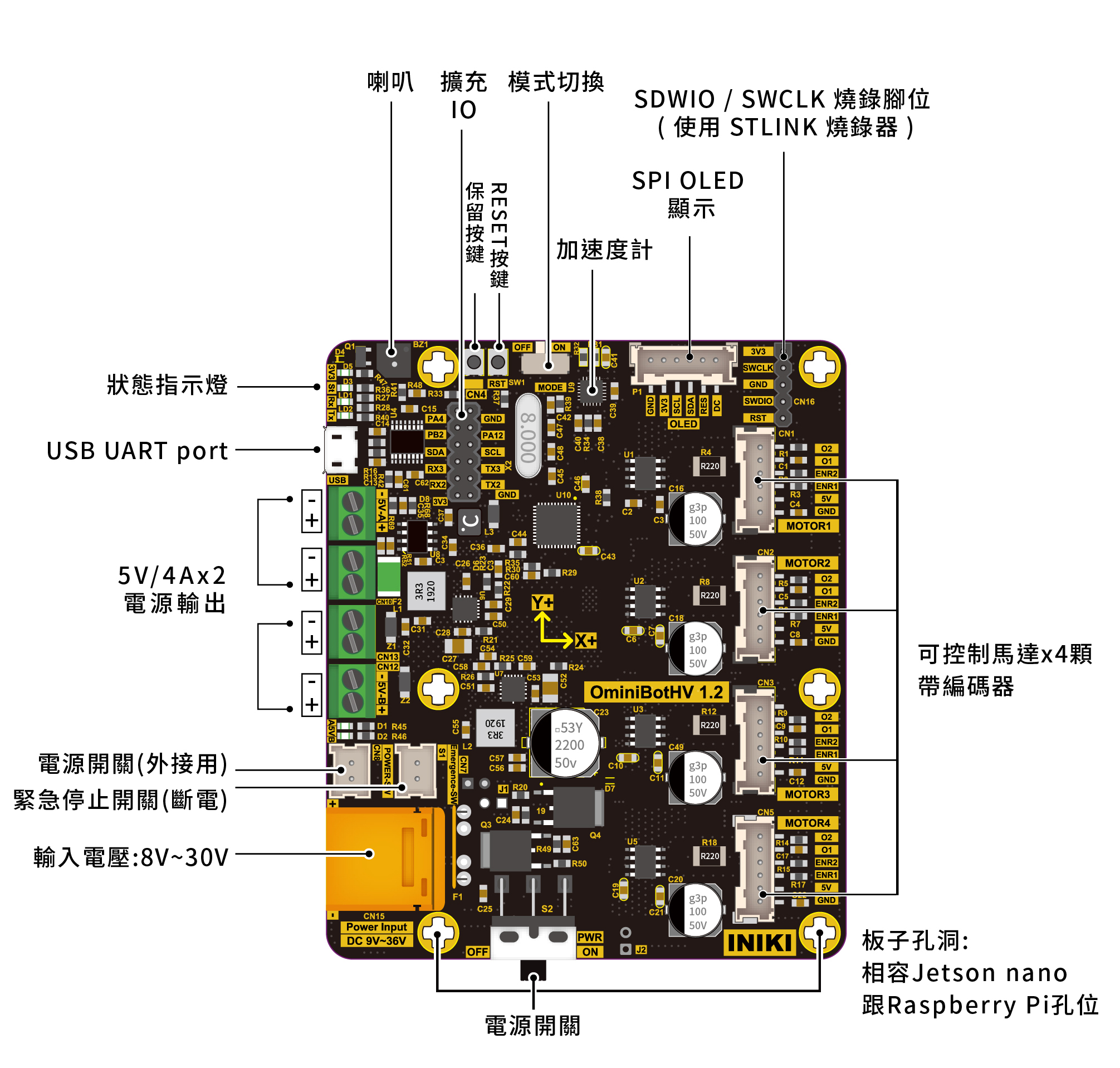 ![]() | 特點1:(輸入電壓)一顆 XT60接頭的鋰電池,便可以啟動OminiBotHV 馬達驅動版。 |