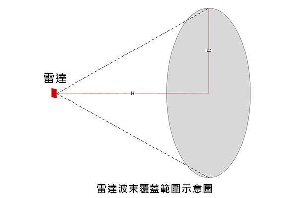 受雷達波束特性影響,雷達在天線面法線方向作用距離較遠,但偏離天線法線方向作用距離會變短。