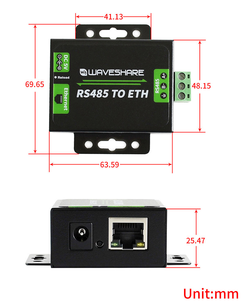 這是一個RS485轉乙太網模組,可實現RS485與RJ45網口之間數據的雙向透明傳輸,支援網頁配置。