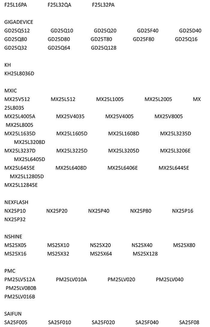 | MXIC 25L12805D | 16MByte/128MBit | 2分20秒 |
