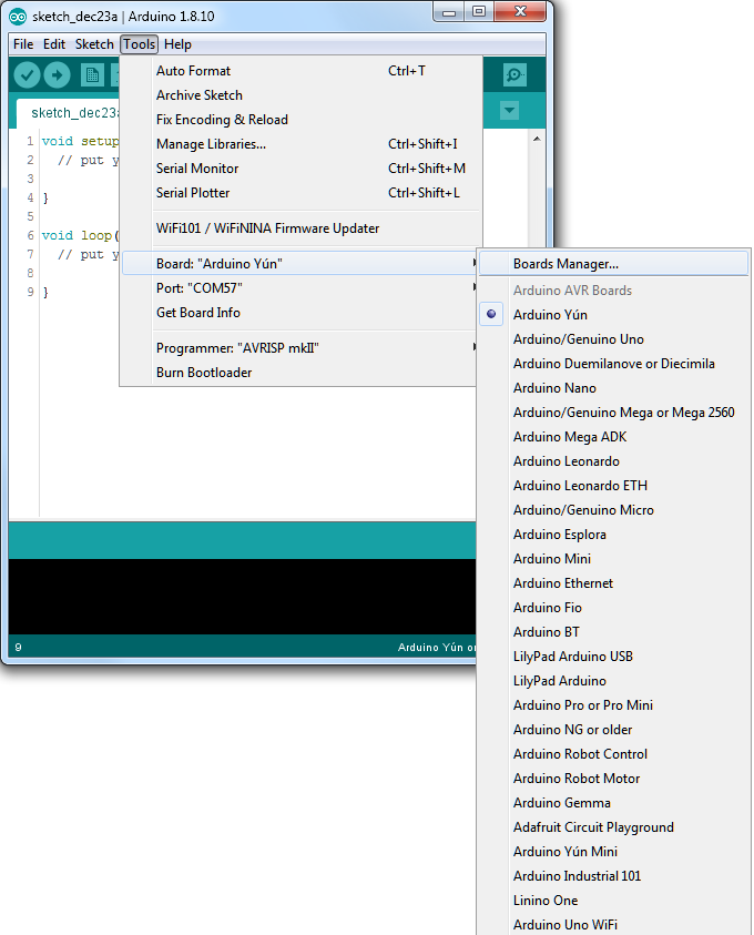 接下來,轉到“工具”->“開發板”->“開發板管理器”: