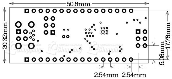 尺寸圖,裝了插針以後可以直接插到麵包板上