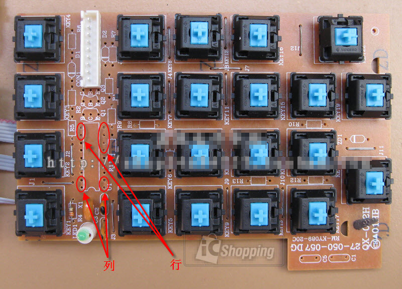 因此,我們需要先把鍵盤原來的控制板拆除,如果是控制板和按鍵板一起的(如22R),則把板子上除了按鍵和跳線、指示燈外的部分全部拆除。