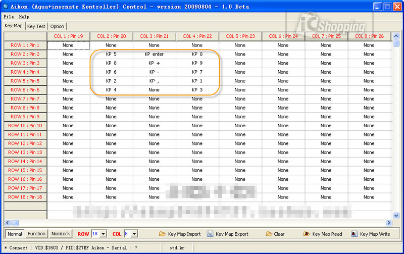 這就是剛才設定的行列值所對應的按鍵(我只設定了部分按鍵),都自動填到裡面了,如果你剛才沒有點擊"Key Map Fix",