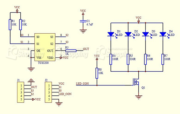 TCS3200識別顏色的原理: