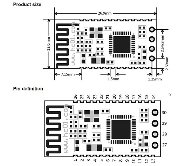 模組採用TI 的CC2540 晶片,配置256K Byte 空間,支援AT 指令,用戶可根據需要更改角色(主、從模式)以及UART串列傳輸速率、設備名稱等參數,使用靈活。