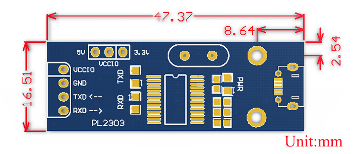 注意:該模組為USB轉TTL電平,切勿直連RS232電平,以免燒壞模組。