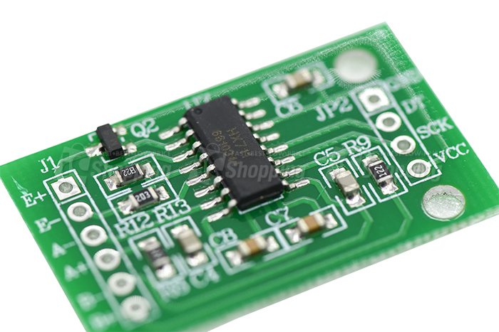 本模組採用24位元高精度的A/D轉換器晶片hx711,是一款專為高精度電子稱而設計的,具有兩路類比頻道輸入,內部集成128倍增益可程式設計放大器。輸入電路可配置為提供橋壓的電橋式(如壓力、稱重)感測器模式,是一款理想的高精度、低成本採樣前端模組
