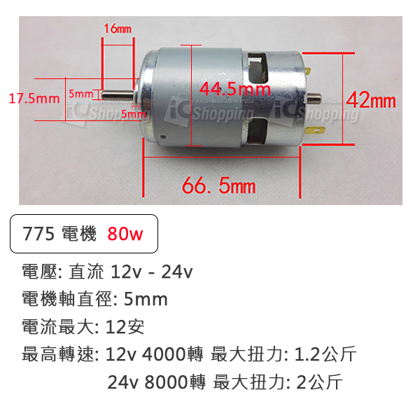 最高轉速:12V 4000轉、24V 8000轉
