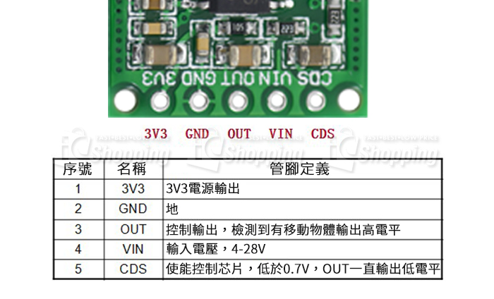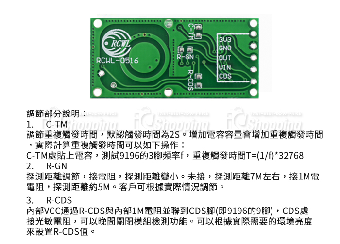CDS腳外接光敏電阻,可以在夜間關閉模組檢測功能。