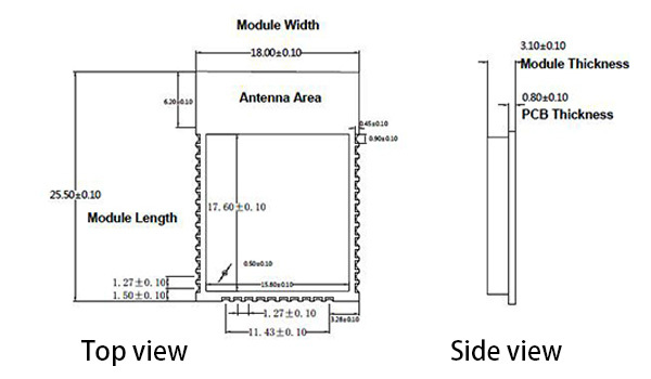 | 模組尺寸(單 位:mm) | (18.00±0.10) × (25.50±0.10) × (3.10±0.10 |