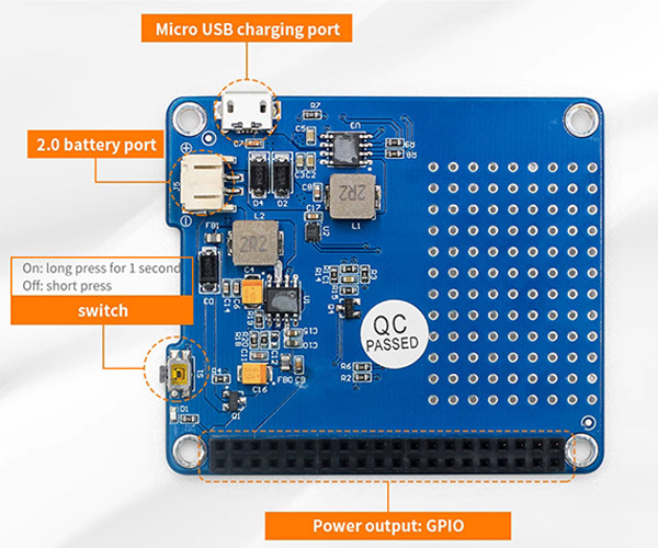 我是專為Raspberry Pi打造的鋰電池真正的不間斷移動電源,支援邊充邊放;利用我們提供的驅動和python範例程式碼,您可以輕鬆地在您的Raspberry Pi電腦上即時顯示當前電量及電壓