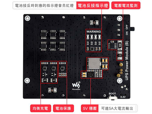 板載電池保護電路,防過充、防過放、防過流、防短路和防反接,均衡充電,工作穩定更安全