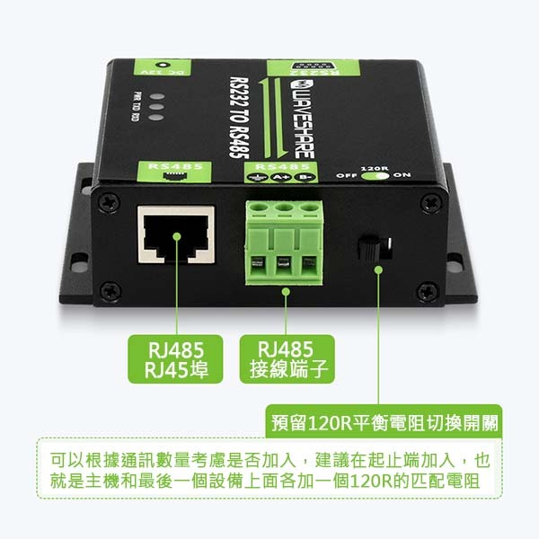 RS485端設有接線端子、RJ45埠兩種不同埠,滿足工業應用需求