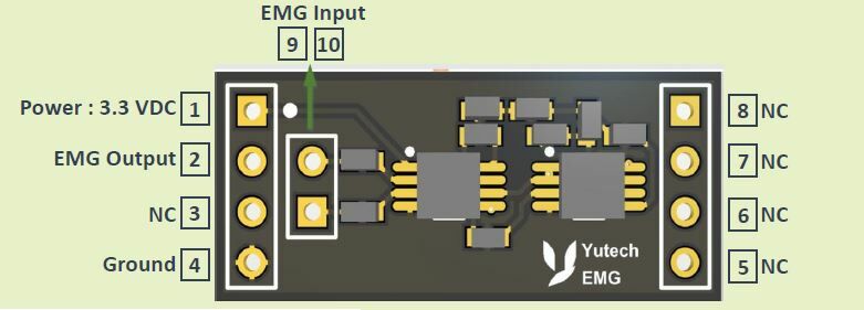 | 9、10 | EMG Iutput | VIN+接入肌電電極正極 VIN- 接入肌電電極負極。 |