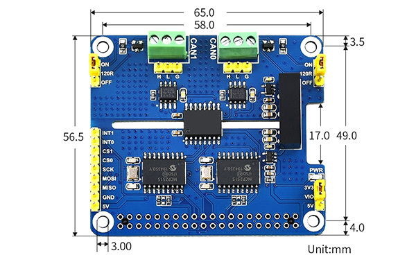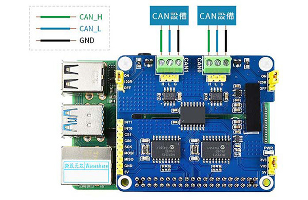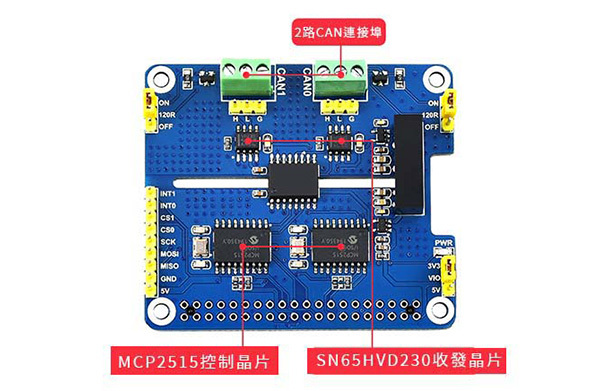 採用MCP2515與SN65HVD230雙晶片組合方案,支援2路CAN接口通訊