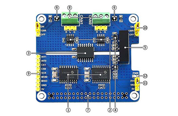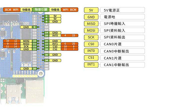 | 1 | MCP2515控制晶片 | 7 | RasberryPi GPIO連接埠 |