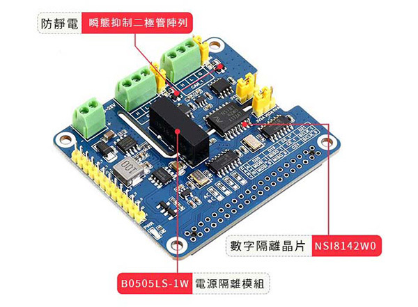 你還在為樹莓派沒有 CAN 連接埠而煩惱?或者想要支援更快傳輸速率、更大數據量或者隔離抗干擾性更強的 CAN 連接埠?那麼,找我就對了,我就是為它量身定做的。我不僅支援傳統 CAN 2.0 協議,還支援 CAN FD 協議,數據傳輸速率更快,數據吞吐量更大。我還板載多種保護電路,包括 500W 的雷擊浪湧、靜電保護、短路保護和電氣隔離,通訊更安全可靠。